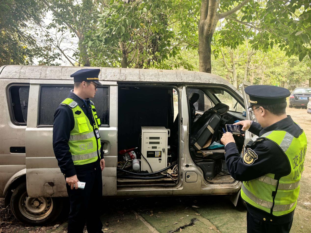 12月31日,记者从成都市交通运输综合行政执法总队获悉,近期,执法总队人员成功查获一辆涉嫌非法改装、售卖汽油的面包车,及时消除了安全隐患,目前,该案件正在进一步调查中。